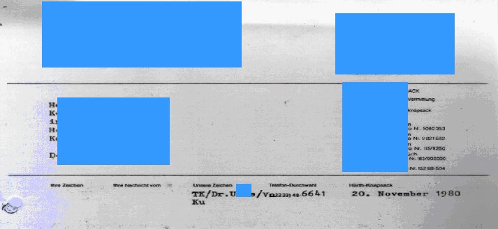Weiteres, unkenntlich gemacht, aber bekannt.